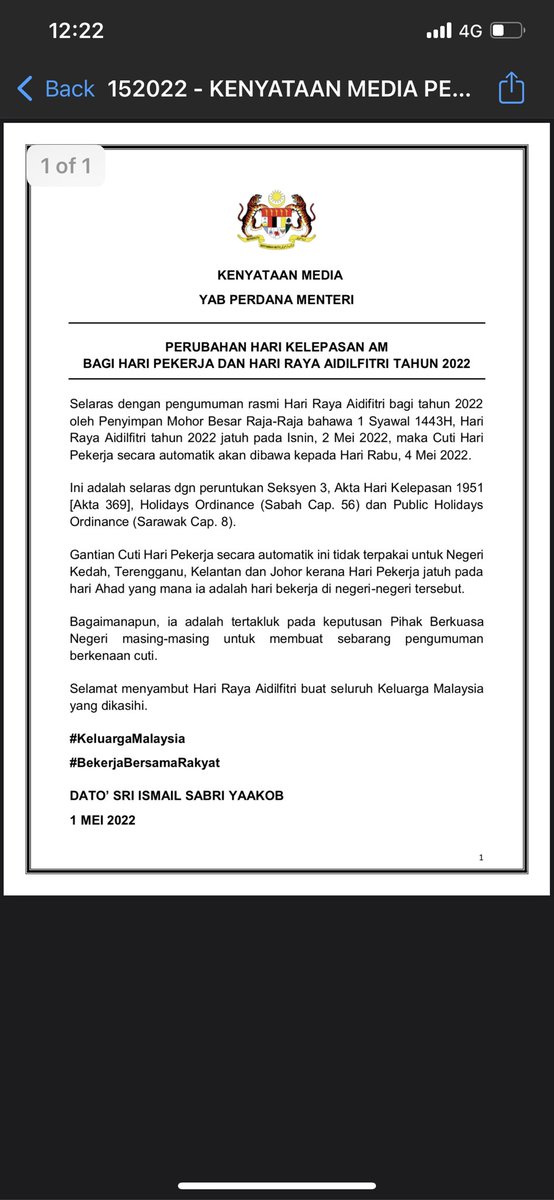 Cuti Umum Terengganu 2022. Perutusan YB SUK Terengganu. 1st day of 1st lunar month.